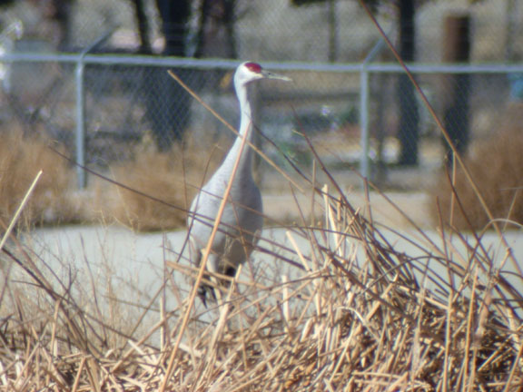 This beautiful birdcontinuing in the area landed at Bishop Sewer Ponds 11:30 am. Then flew to the field directly north of the sewer ponds, near the entrance, and began feeding next to the sewer ponds' fence.