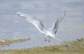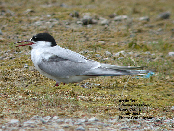 14 July 2002...At noon today we observed and photographed a second summer Arctic Tern at Crowley Reservoir, originally found by John Sterling on 7 July. The bird was seen on the NE side, between Layton Springs and the Owens River delta. The bird was usually seen foraging low over the water with Forster's Terns, making for good comparison. Marks making this bird an Arctic include the dark carpal bar, pale gray primaries, long tail, and short legs.