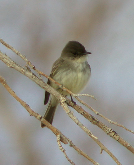 Weather was surprisingly good. With the exception of our mountaineering teams, winds were calm. (Underlined denotes new to count.) Highlights include an EASTERN PHOEBE found by the Carolyn Gann/Wilson/Nahm/Mitchel team at the Bishop Golf Course (photographed at right) and WESTERN BLUEBIRDS. The Parker's had OSPREY and SURF SCOTER at Pleasant Valley Reservoir. Dunn and House found HARRIS'S SPARROW, LARK BUNTING, BARN SWALLOW, and SWAMP SPARROW in Round Valley. The Heindel's located a COMMON YELLOWTHROAT at the Bishop Sewer Ponds and two WESTERN SCREECH-OWLS. A GOLDEN-CROWNED SPARROW was found by Gates/Heath/McCreedy near the Owens River and a female VARIED THRUSH in a Bishop yard. A GREATER YELLOWLEGS was found at Nik and Nik Ponds by the Wells/Vocelka/Duvall/Engelhardt group. A whopping 33 EVENING GROSBEAKS mobbed the Nelson/Ellis/Miller/Escruceria team up high on Bishop Creek. A BLACK-CROWNED NIGHT HERON was tallied by the Parker's near Birchim Canyon. At least two MERLIN were near Bishop. It's a slow year for CASSIN'S FINCHES, but the Zatorski/Hetzler mountaineers found six at a Starlight feeder. Chris and Rosie's "SOOTY" FOX SPARROW continued go feed on sunflower seeds it their backyard. Also intriguing was a report by the Wells/Vocelka/Duvall/Engelhardt group of a woodpecker showing many characteristics of LADDER-BACKED WOODPECKER on Bishop Creek Canal south of Dixon Lane. Unfortunately, the bird was silent, so the possiblity of hybridization with NUTTALL'S WOODPECKER exists. Efforts to refind the bird were unsuccessful. The Gorham's had another intriguing report of an bird exhibiting characteristics of an adult GOSHAWK (documentation forthcoming). Notable misses were few: Greater Roadrunner, Common Merganser, and Sage Sparrow. P.S. New to this year's Bishop CBC..."Count Week" extends three days before and after count day. Please post me if you see any birds missed yesterday; they can be added to our Count Week total. |