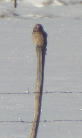 After all these snowstorms, we wondered what those Short-eared Owls Jon Dunn found in mid-November on the west side of Crowley Reservoir were doing. This afternoon, we parked at the McGee Creek turnoff from 395 and skied toward Crowley past the white modular home through variable but generally 2 feet of powder. Three Short-eared Owls were found along McGee Creek pastures coursing back and forth over the snow and occasionally dropping down through it. These birds are a treat to watch and the effort was a great way to start winter, officially! |