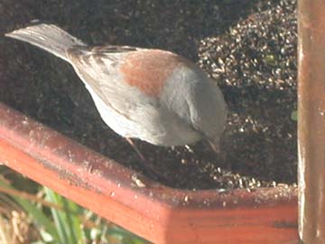 Junk-food Junco chowing down on nijer at the Kirk's feeder in Independence, 19March03