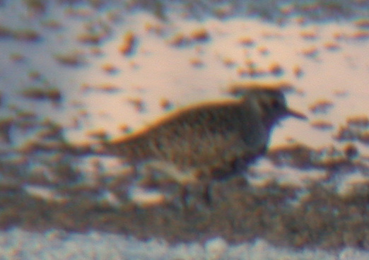 We saw two Pacific Golden Plovers at Owens Lake today. They were foraging together at Sulfate Well, the Eastern outflow next to "Sandpiper Road" where we observed them from the spot where there is a metal gate and plover speed limit sign. We identified them by golden/buffy color and stripes on tail. Wing projected slightly beyond the tail. One was molting heavily into breeding plumage and one was just starting to molt. The only other birds around at this seep were some Amereican Avocets. They were pretty calm and seemed like maybe they may hang around for a while -long enough for our other crew members to come over and verify our sighting at least! | ![]() |