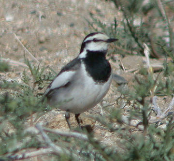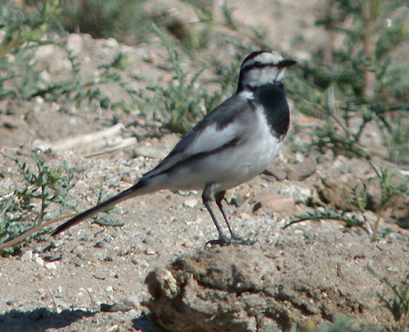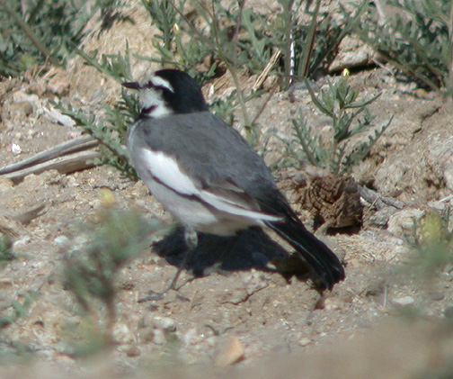 On the morning of 10 May 2003 we found and photographed a Black-backed (lugens) Wagtail at Deep Springs College, Inyo County. We spent 1.5 hours observing, documenting, and photographing the bird. Despite the best efforts of several other birders, the bird was not relocated later that day or the following day. We initially id'ed it as either a Black-backed or the closely related White Wagtail because of seemingly conflicting marks exhibited by the bird (e.g. the upper surface of the primaries were mostly dark). However, upon reading Howell's (1990)* Western Birds article and other sources we concluded that this is a Black-backed Wagtail, likely in first alternate plumage. Howell reports that the wings of Black-backed Wagtail in their first year are mostly dark, very similar to those of White Wagtail, and it takes 2 years for the extensively white wing of most adult Black-backed to develop. The main marks this bird showed that fit Black-backed was the pure white chin, completely white greater and median wing coverts, darker (almost-charcoal) back, black rump, and small specks of black in the back.