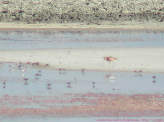 Yesterday's ESAS Owens Lake field trip was a great success. Mike Prather led us to southern and western parts of the lake. The first stop was Dirty Socks pond: highlights included Green Heron, Pied-billed Grebe, Long-billed Curlew, Solitary Sandpiper, White-faced Ibis. Next Stop Dirty Socks Habitat Shallow Flooding area: juvenile Sanderling, Baird's Sandpiper, 70+ Snowy Plover. Next Stop Cartago Marsh: another Baird's. Cottowood Marsh: Long-billed Curlew.