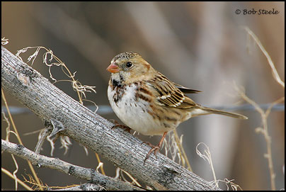 We wouldn't exactly say it's raining Harris's Sparrows, but we've seen a couple since Debby found one a week ago at Millpond. On Saturday, 13 Nov, Tom Wurster showed us an immature on Round Valley Rd, south of the school at the 'S' turn. This morning there was another immature at our feeders. We suppose a 'drizzle' is more like it.