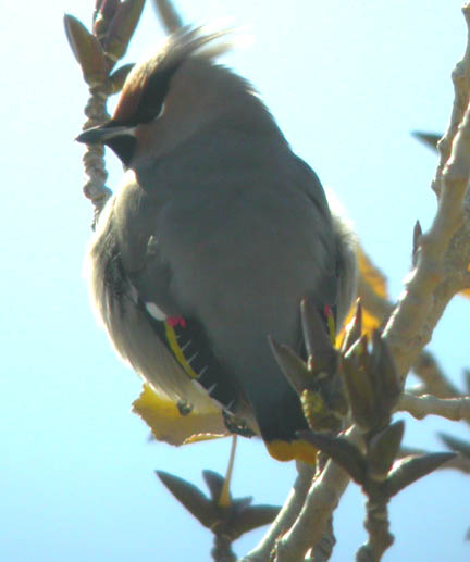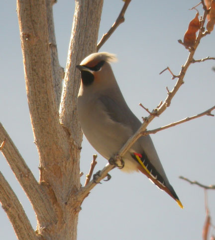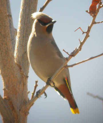The husky-sounding call of this guy got my attention this morning! At about 7:30 this morning the Bohemian Waxwing was on Summit Road. He appeared to be alone at the time.