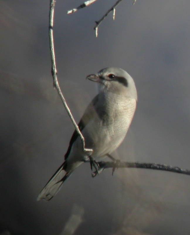While conducting the Mono Basin CBC on 12/19, we found a Northern Shrike. He was along the dirt road that parallels highway 395, and is between Williams Butte and 395 (I think it is 1N15). It was about 1/2 mile south of the turnoff to Horse Meadows. It was in an area of dead shrub willows.