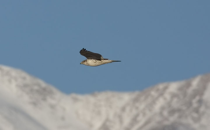 The 23rd annual Bishop CBC was held on December 18, 2004. Fifty-two people divided into 14 teams scoured every bush, tree, feeder, and phone pole every bird in the 15 mile count circle. The weather was beautiful - a low of 23F quickly warmed to a high of 66F, no wind and not a cloud to be found. The preliminary total number of species seen on count day was 107, just shy of the record of 108 set in 2002. Highlight sightings were two lingering DOUBLE-CRESTED CORMORANTS and a possible BARROW'S GOLDENEYE at Pleasant Valley Reservoir. The goldeneye was a difficult identification; at this time I’m awaiting further details and observation. A BLACK-CROWNED NIGHT HERON was found, always rare in winter. One CINNAMON TEAL, normally absent in December was found at the Bishop Sewer Ponds unable to fly. One adult SANDHILL CRANE at the Sunland alfalfa fields was only the second seen on the Bishop CBC. A BARN OWL, hard to find in winter. One WHITE-HEADED WOODPECKER at Bishop Elementary School and two others the previous day in the count circle were exceptional finds at lower elevations. An adult male YELLOW-BELLIED SAPSUCKER at the Bishop Country Club was carefully scrutinized to separate it from the more expected Red-naped Sapsucker. Two woodpeckers with characteristics of Nuttall’s and Ladder-backed were thought to be NUTTALL x LADDER-BACKED HYBRIDS. Unprecedented in December was a very late HAMMOND'S FLYCATCHER. For the second time on a Bishop CBC, the rarer WESTERN BLUEBIRD (15) outnumbered Mountain Bluebird (0). Rare in fall and winter, one SWAMP SPARROW near Dixon Lane. Two HARRIS'S SPARROWS, one adult and one immature were at a backyard feeder. A PINK-SIDED race of the DARK-EYED JUNCO was carefully separated from other races. Notable misses were WOOD DUCK, HORNED LARK, PINYON JAY, MOUNTAIN BLUEBIRD, TOWNSEND'S SOLITAIRE, HERMIT THRUSH, and CEDAR WAXWING. ‘Count-week’ had not yet finished, but so far WHITE-THROATED SPARROW, ANNA'S HUMMINGBIRD, COSTA'S HUMMINGBIRD, and CACKLING GOOSE were added to the ‘count week’ list. Many thanks to all the participants. Mark your calendars for the 2005 Bishop CBC on Saturday, December 17, 2005.