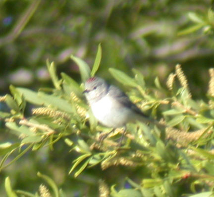 We were delighted to see a Lucy's Warbler this morning in the willow trees behind our house. We first thought... oh look, our first Warbling Vireo of the season, but it sure is gray?. When we finally saw the rufous on the crown and upper tail coverts, we knew we had a new yard bird. We suppose it overshot Death Valley in the clouds last night. |