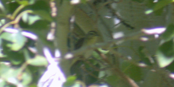 Thanks to Chris McCreedy's post and Debbie House's great directions, we were able relocate the Philadelphia Vireo around 6 PM this evening. After an hour of looking and listening to many warbling vireos, we finally heard a different vireo singing from an aspen bordering the meadow on the opposite side of the creek from the campground. We got ok views for a minute, while it sang and preened. Then it disappeared into dense foliage and continued to sing. We tried taking photos and recorded it's song. Yes, the creek crossing is gnarly (literally, cause you have to scoot across a downed aspen tree).