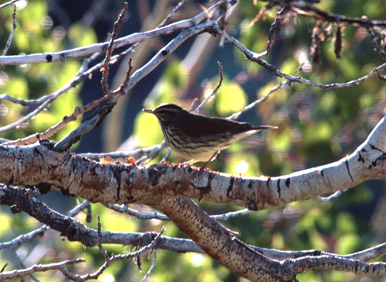 Attached are two photos of a Northern Waterthrush seen 18 August 2005 near Twin Lakes Campground, Lower Twin lakes, Bridgeport area.