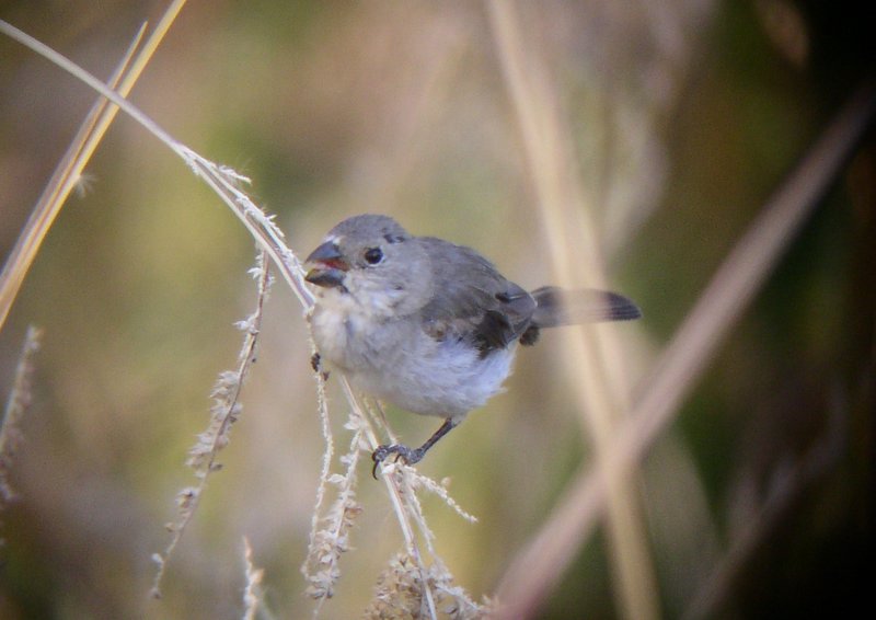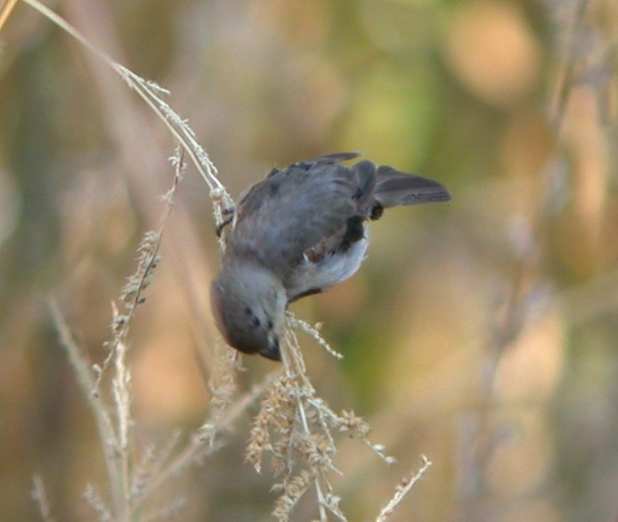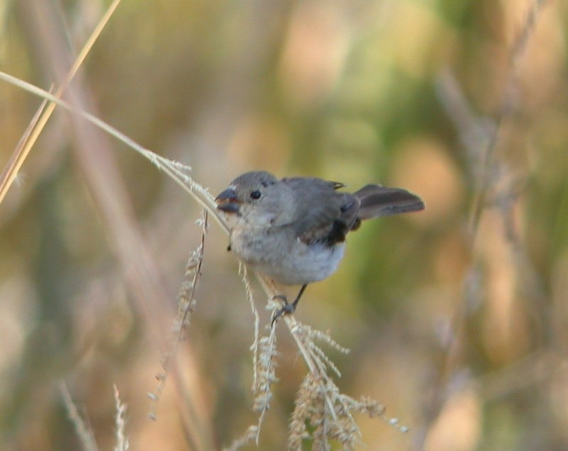 Yesterday morning (9 Nov 2005) I found a small brownish bird with a short, stubby black bill with a noticeably curved culmen at the end of Steward Lane, south of Big Pine. The bird had no breast streaks, back streaks, wing bars, or obvious facial markings. It wagged its longish tail back and forth. My initial gut instinct said seedeater, but its natural occurrence in California is unprecedented. I also considered Varied Bunting, which has been found a couple times in California, including once in Death Valley in November 1977.
