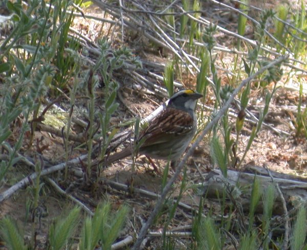 What a day for White-throated Sparrows! Later this morning (10-11AM), there were two more, a tan-striped morph and a bright white-striped adult at Green Gate Cottonwoods. They were often in the weeds along the road.