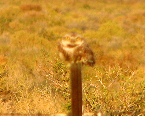 This little guy was perched along Highway 6 on 10July, about 1/4 mile inside Mono County. I find the photo interesting in that the autofocus focussed on a shrub behind the owl even though the owl was centered...maybe it was too small to register, or maybe the Canon Digic processor doesn't recognize owls.