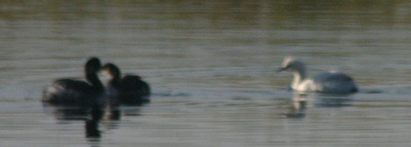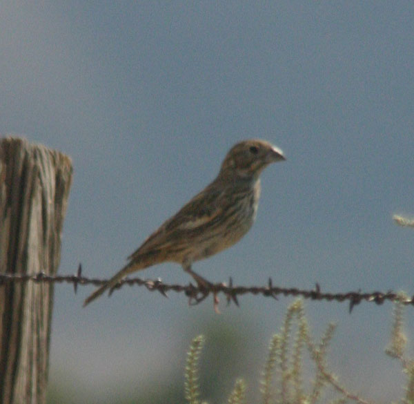 On 14 Sep we had a leucistic Eared Grebe at Klondike (these partial albinos are reported every few years, photo below), 3 adult Forster's Terns at Tinemaha Reservoir (uncommon during fall migration), 1 Western Scrub-Jay (nevadensis subspecies) at Fish Springs, 4 Vesper Sparrows on Steward Lane along with 1 Lark Sparrow and 1 Lark Bunting (photo below). The sparrows are occurring when expected but sometimes are hard to find. The bunting is a rare fall migrant from late Aug to late Nov.