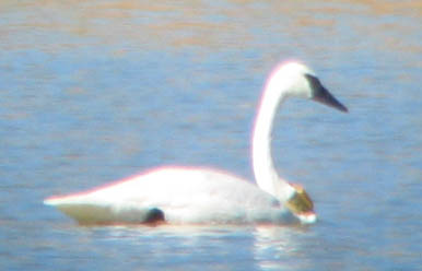 Seen from about noon to about 1:45PM. Swan was swimming back and forth far side of pond (from road). Neck band color (YELLOW) and alphanumeric style (8Y7) match USGS protocol for Trumpeter.
