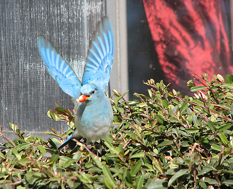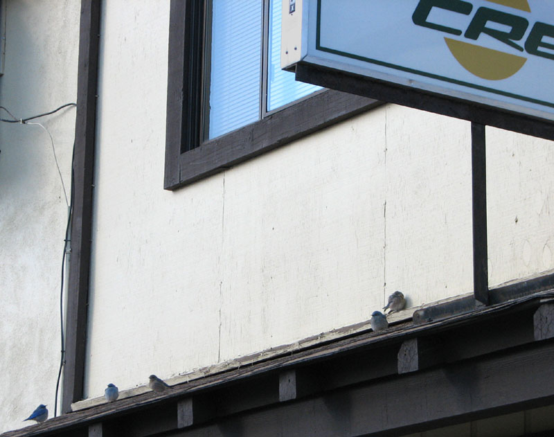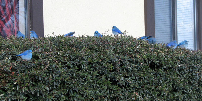 This afternoon, at the CREST office behind Penney's, about 40 Mountain Bluebirds were seeking shelter from the cold north wind, and gobbling up the last of the pyrocantha berries. Quite the spectacle.