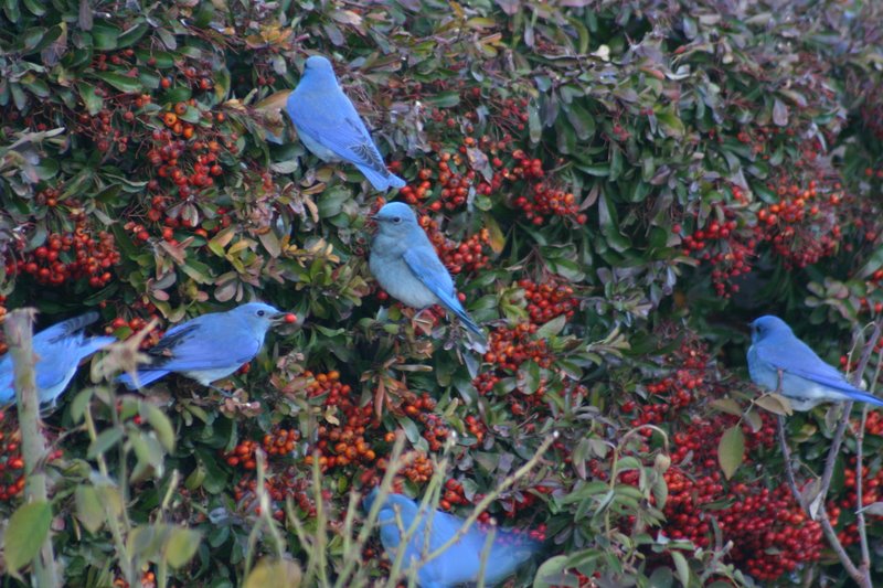 Over the past month we have had a very large flock of Mountain Blue Birds in our yard in Knight Manor (Big Pine) and have heard there are a lot at Baker Creek. They have been fascinating to watch, except when the local cats prey on them. Interestingly enough with this cold snap they are sitting on the ground in front of garages, our motorhome and plants trying to keep out of the wind. We keep an eye out for the cats and chase them off when we see them