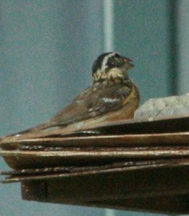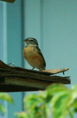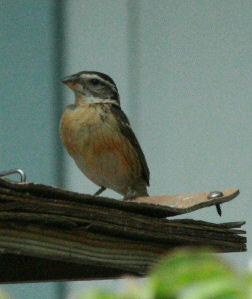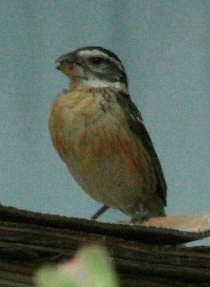 Bishop City Park had at least 3 Western Tanagers, 3 Audubon's Warblers (one maybe a Myrtle), one adult male MacGillivray's Warbler, 3 species of Hummingbirds which were Rufous, Black-chinned and a smaller looking one (with subtle rufous on the sides) compared to the Rufous Hummer that kept "bee-lining" for it & scaring it of the feeder. It might fit Calliope, which are rare now on Heindel's graphbook. Also near the SE corner of the park were a handful of Brewer's Sparrows and an adult White-crowned Sparrow Gambel's race. And best of all was an interesting grosbeak with a buffy breast which had subtle patches of red mixed in, fine streaks, which a first winter male could show (Sibley page 466-467). The upper mandible seems too dark for a RBGR though. Mystery Grosbeak: