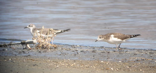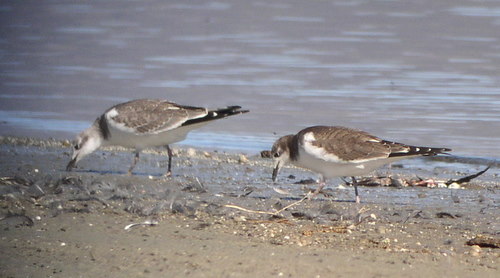 Yesterday, Andy Zdon and I birded Long Valley, including Crowley Lake. At the north end of Crowley Lake Drive we found piles of Yellow-rumped Warblers and a variety of other birds, including an immature male Townsend's Warbler. At Crowley Lake we had a Horned Grebe (good close views) and three juvenile fresh plumaged Sabine's Gulls that were almost at our feet (photos to follow later). What intrigued me about them was that two were largely gray and the other was decidedly brown above and on the chest sides. The difference was dramatic, especially when both types were together. So, what's this all about? Several possibilities come to mind.....individual variation, possibly color morphs within the same population, or possibly geographic variation is involved. Perhaps the browner bird was younger and the gray birds were a bit more faded, but I wonder about that as the gray ones looked so fresh with complete pale fringes. We had the three Sabine's and the Horned Grebe at the east side of the mouth of the McGee arm. JLD