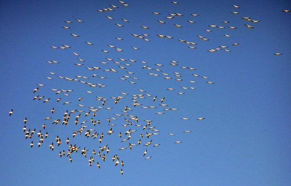 We saw Pintails, flock of Pelicans, flock of Red Wing Black birds, Yellow rumps, Song Sparrow, Cinnamon Teals, Buffleheads, Red Heads, Green Wing Teals At Farmer's Pond. At the Nik & Nik ponds we saw 4 Tundra swans, East and West ponds, two in each one.