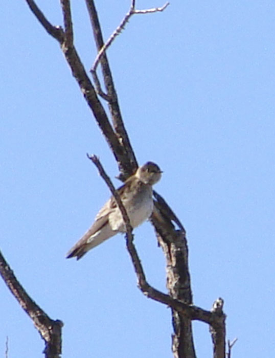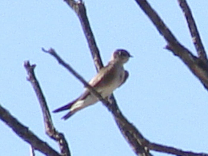 We saw a solitary swallow we suspected was a Northern Rough-winged and got some photos. At home, we looked at the photos in the computer and forwarded them to Jim and Debby Parker who agreed with the ID.