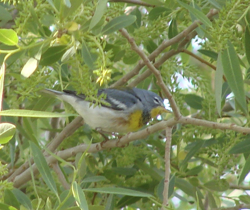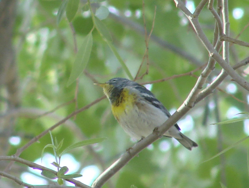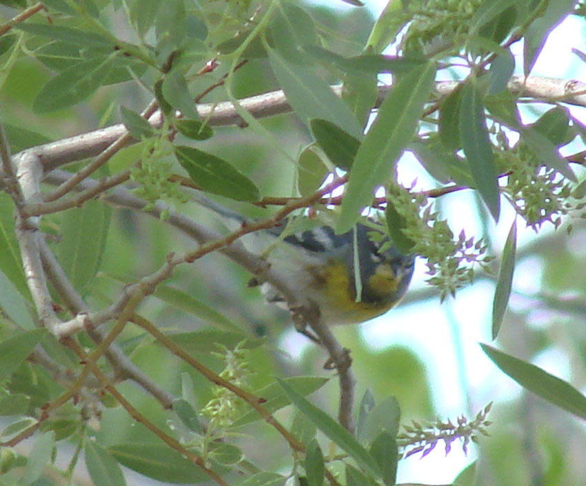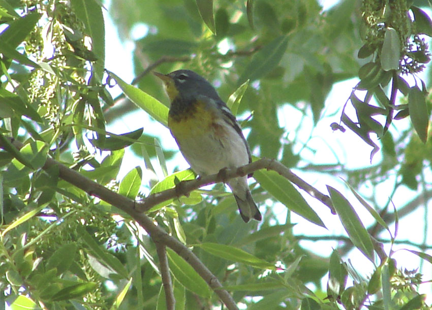 We saw this bird this morning about 9:15 am in a willow at the intersection of C and A canals. We were able to approach the bird closely and it was unconcerned and busily eating. We were able to identify all of the field marks shown in the NGS guide as well as getting photos. A first for us!
