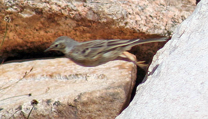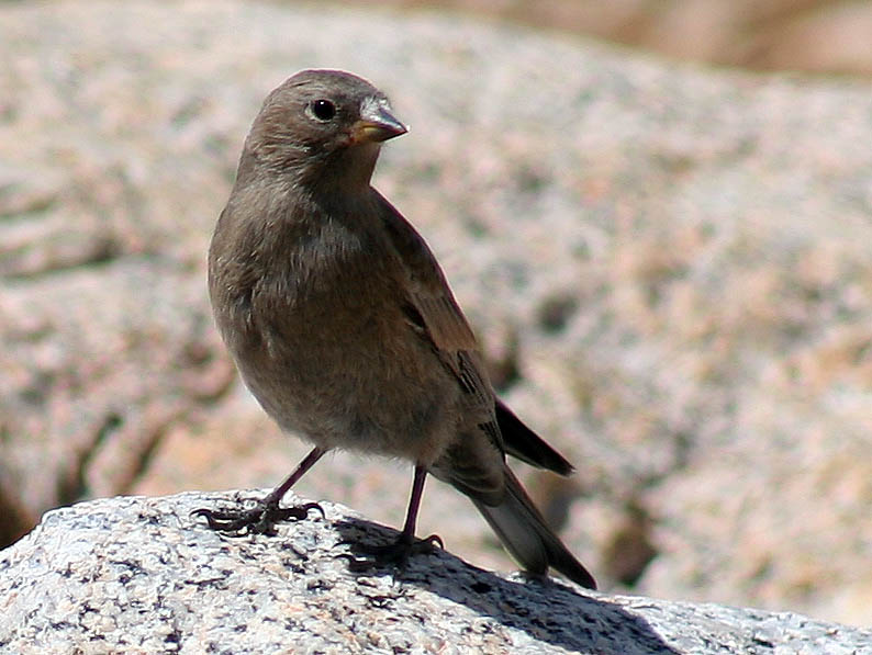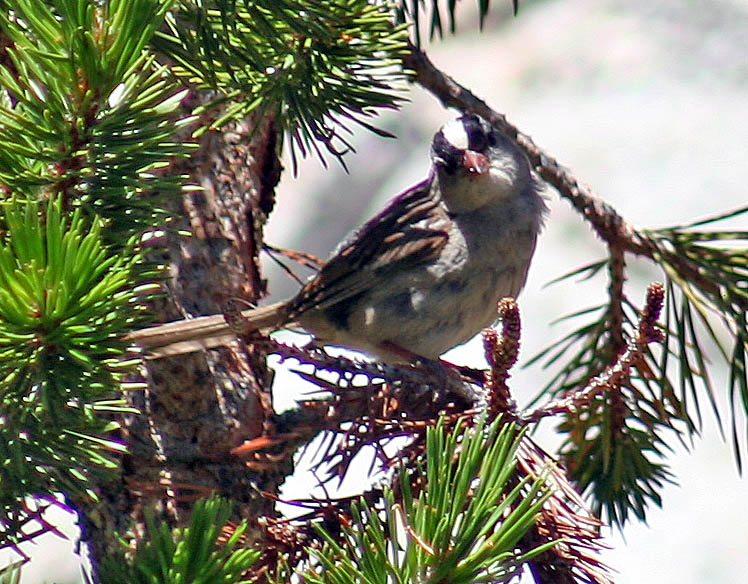 Spent from the 9th to the 13th at Oh Ridge Campground next to June Lake and saw a fair amount of birds through the week. The campground was inundated with Green-tailed Towhees and Clark's, but also saw a fair number of W. Tanagers. A Black-throated Gray Warbler and a W. Sapsucker also came through. Spent one day up at Virginia Lakes and saw many Dusky Flycatchers, in fact, at one lake I observed over six of them in a cluster of trees. On Sunday the 10th at Mono Lake, I observed 2 Baird Sandpipers along with a number of Leasts and Westerns (also possibly a Semi-palmated, but I doubt I could have identified it anyway). Also had Rough-winged Swallows at the County Park. Tuesday, the 12th, I hiked up to the Conness Lakes out of Saddlebag Lake and saw Gray-crowned Rosy Finches, a pair of A. Pipits, and the mountain subspecies of the White-crowned Sparrow. Finally, on the day leaving June Lake, saw the resident Bald Eagle swoop down on the lake (and using a #3 treble hook and power bait) pick up a trout and subsequently drop it 50 feet later. Nothing too exciting but a good week nonetheless. Brad Singer, Lake Arrowhead