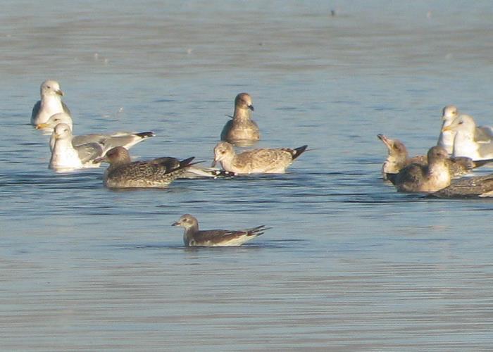 I went down to the DWP dock to make several phone calls to friends from Louisiana this afternoon to see how they fared in Hurricane Gustav. At least 3,000 California Gulls were foraging just offshore on a swath of Alkali Fly pupae blown up in yesterday's massive windstorm. And while listening to Andrew Barron, who evacuated to a friend's house in central Louisiana, wonder whether or not his home in Thibodaux had made it through the storm, a single juvenile Sabine's Gull flew by headed eastward. Then while listening to a friend I worked in New Orleans with as a voluteer after Katrina tell me about being shot with rubber bullets by cops in St Paul today while he was protesting at the RNC, an adult Bonaparte's Gull flew by eastward. So after I was done on the phone, I wandered eastward a shortways to the Lee Vining Creek delta, where both birds were bathing. An all white Eared Grebe was also there.
