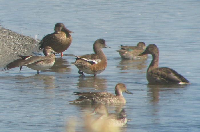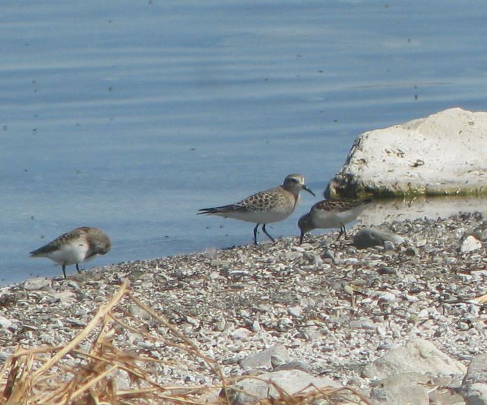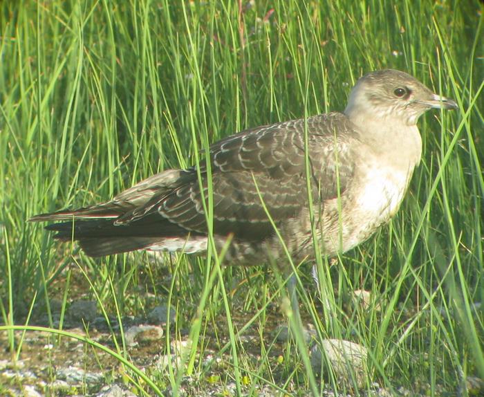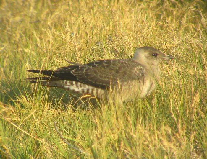 On my way back from Crowley I decided on a last minute detour down to the Rush delta before heading back in to Lee Vining. After about a half an hour just sitting on the bluff enjoying the company of bathing California Gulls, I noticed a brownish bird walking around on one of the sandbars. Another juvenile Long-tailed Jaeger! Bi-colored bill (dark at the end, bluish at the base), clean unstreaked pale nape, white windows only on the under surface of the wings, and very small and dainty size. It was injured, and flopped it's way into the grasses at the edge of the delta, unable to fly. Stella and Santiago joined me, and we got about 50' from it, trying not to disturb it. It just sat there, preening. Coyote food tonight?