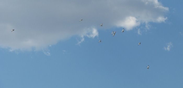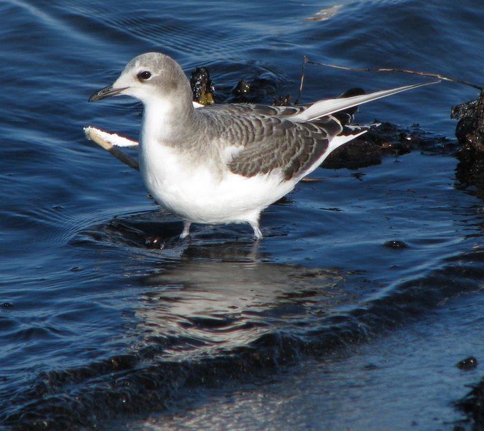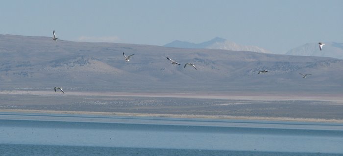 First I saw 2 Sabine's Gulls sitting on the water at the Lee Vining Creek delta. Then suddenly there was a third with them. Then I heard some strange call notes and a few more flew in. Then the birds on the water lifted off to join several more, and I was standing there dumbfounded as a flock of 10 Sabine's Gulls flew circles around me (I feel so privileged to use the word "flock" with Eastern Sierra Sabine's Gulls). All of them were immatures. Also at the lake today in various spots were 2 juv Sanderlings, 2 juv Baird's Sandpipers, 1 adult Bonaparte's Gull, 1 Common Loon, and a Prairie Falcon disputing some aerial issue with a Kestrel.