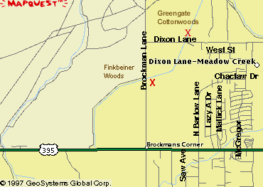 Go north/west out of Bishop on US 395 to Brockman Lane (there's a gas station at the NW corner). Turn right (north). Go 0.6 miles to a canal, where you can park on the dirt shoulder. Drift gates (be sure to close them after passing through) give access to the areas on either side of the road. You can follow a dirt road to the west through the wooded area known among local birders as Finkbeiner Woods - one of local birder John Finkbeiner's favorite spots. Roaming along the road and paths to the east of Brockman Lane will take you along a tree-lined canal and through meadows bedecked, in Spring, with acres of Iris.
